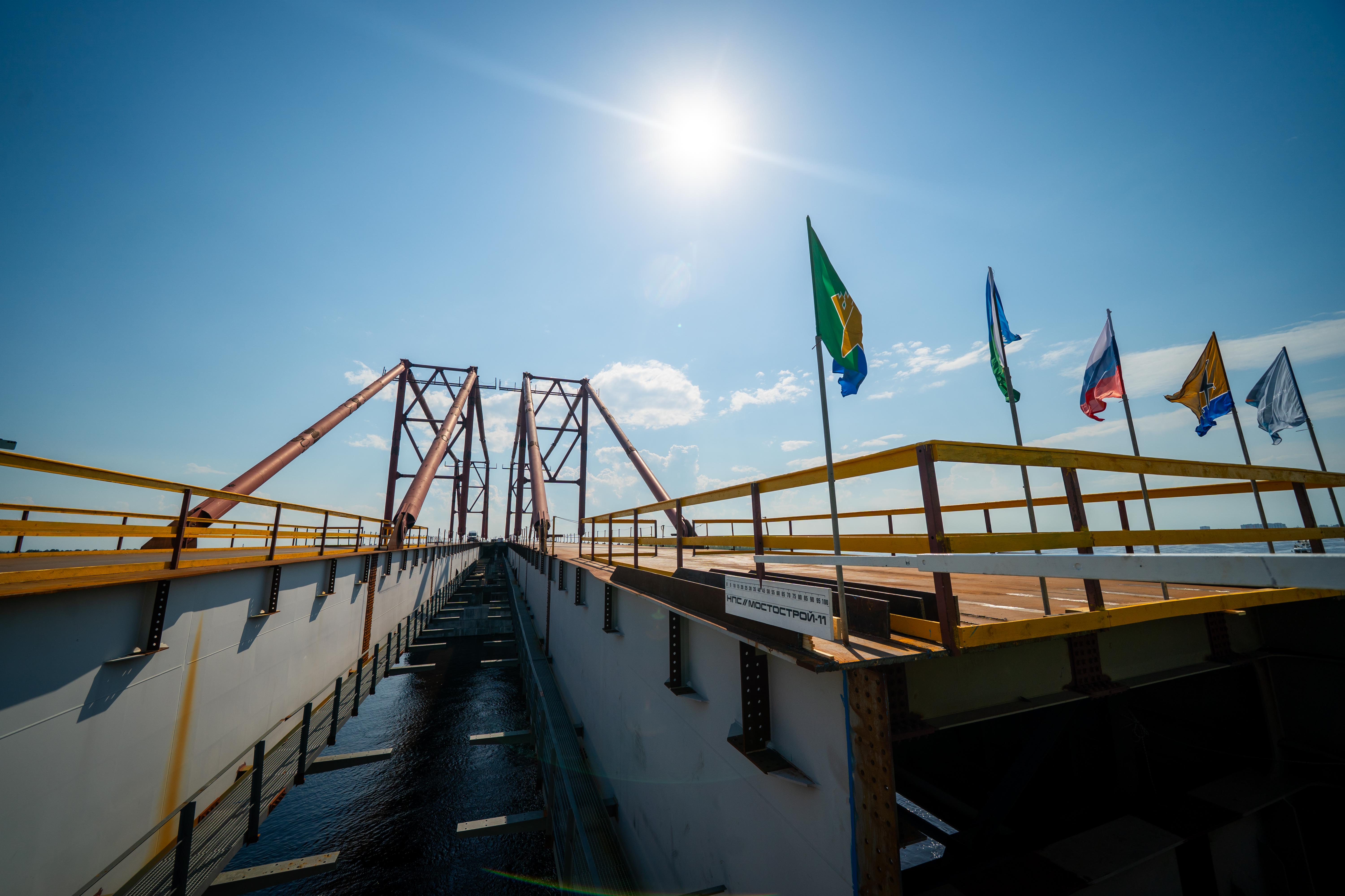 В Ханты-Мансийском автономном округе – Югре состоялась состыковка мостовых пролетов левого и правого берегов мостового перехода через реку Обь в районе Сургута.