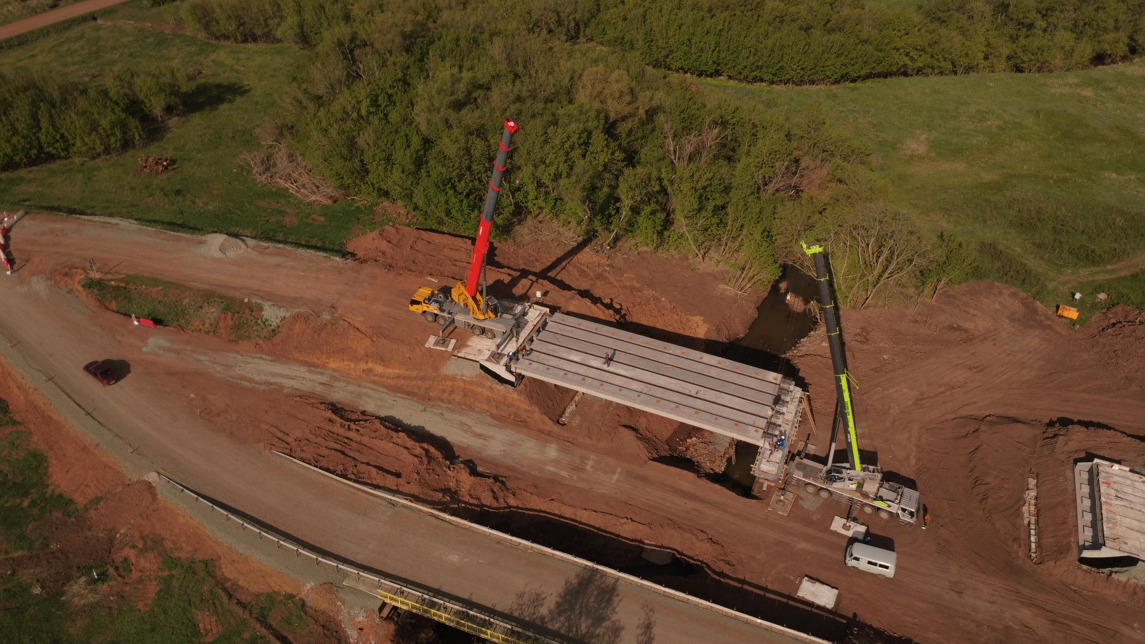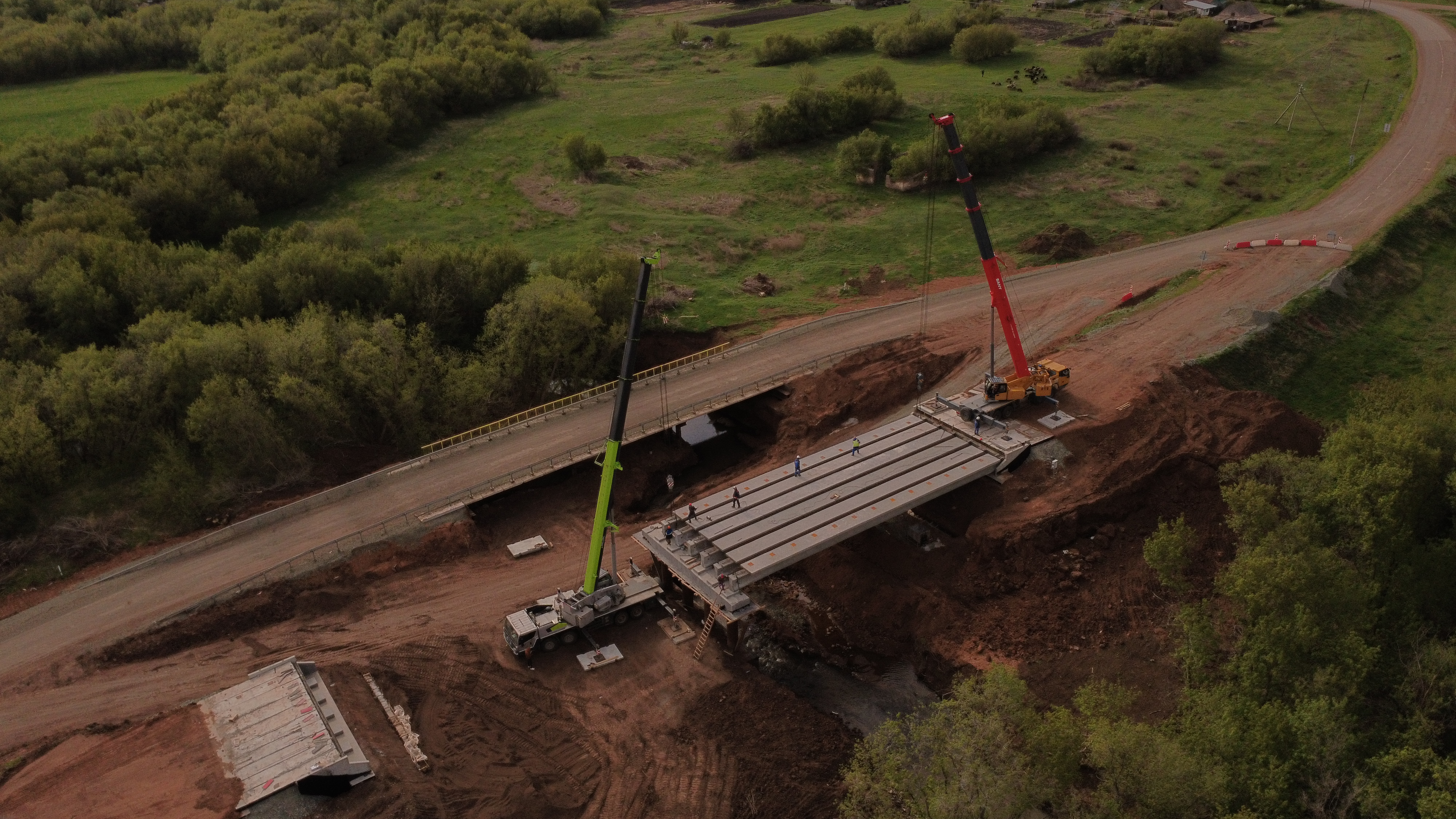 Капитальный ремонт моста начался в 2024 году. Подрядная организация уже выполнила монтаж основных конструкций — береговых опор и пролетного строения. В дальнейшем здесь обустроят новые деформационные швы, уложат гидроизоляционный слой, асфальтобетонное покрытие проезжей части, оборудуют водостоки, барьерные и перильные ограждения. Так как мост находится рядом с населенным пунктом, проектом также предусмотрены пешеходный тротуар и искусственное освещение.